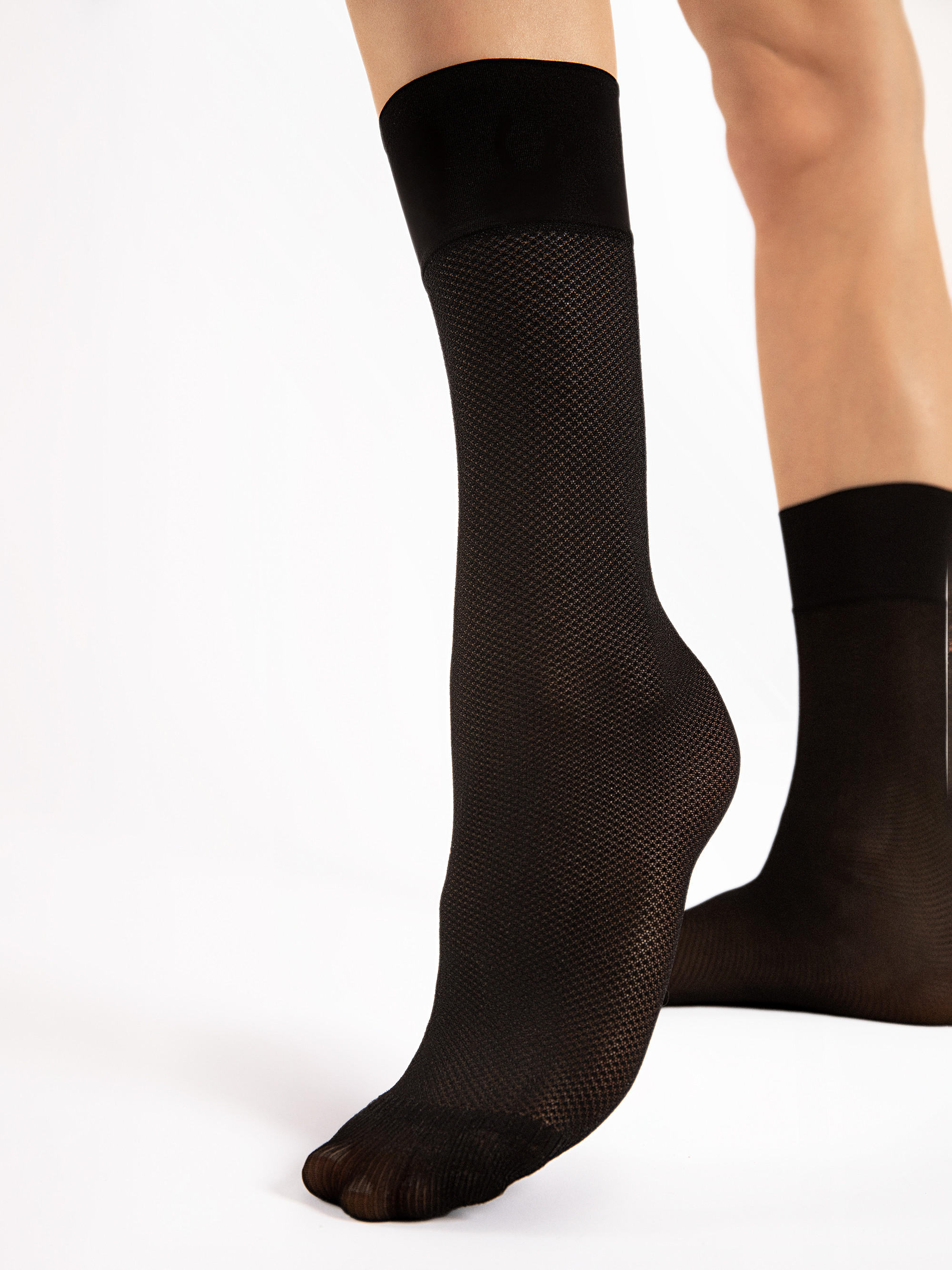 Långa sockor med ett delikat ajourmönster och komfortabel resår, med osynlig förstärkning i tån, 20 denier.