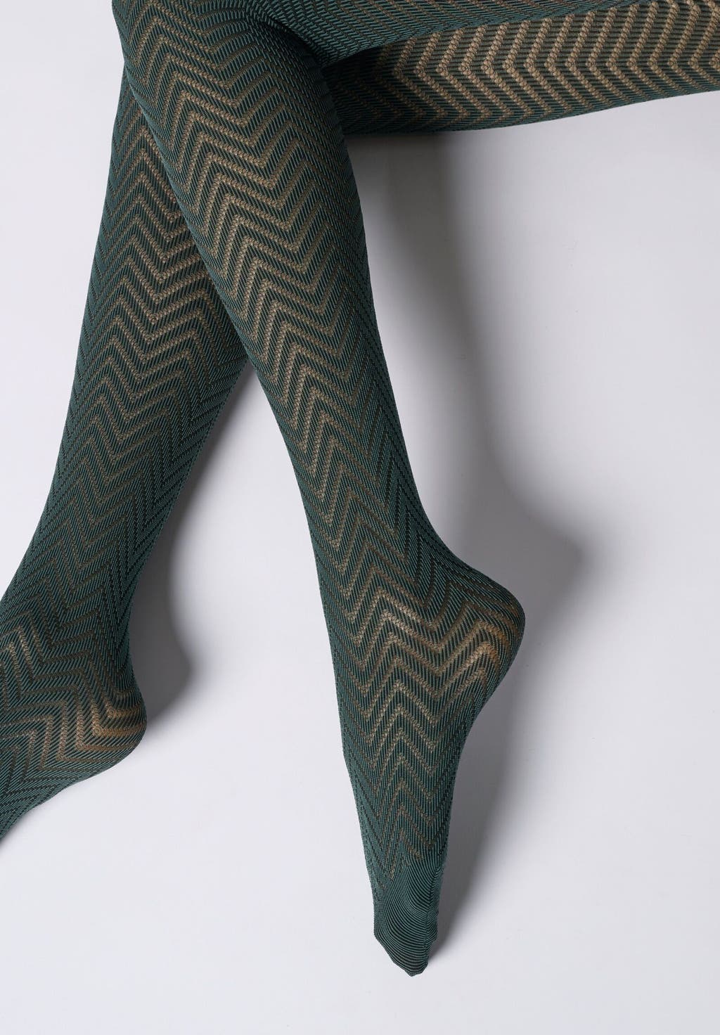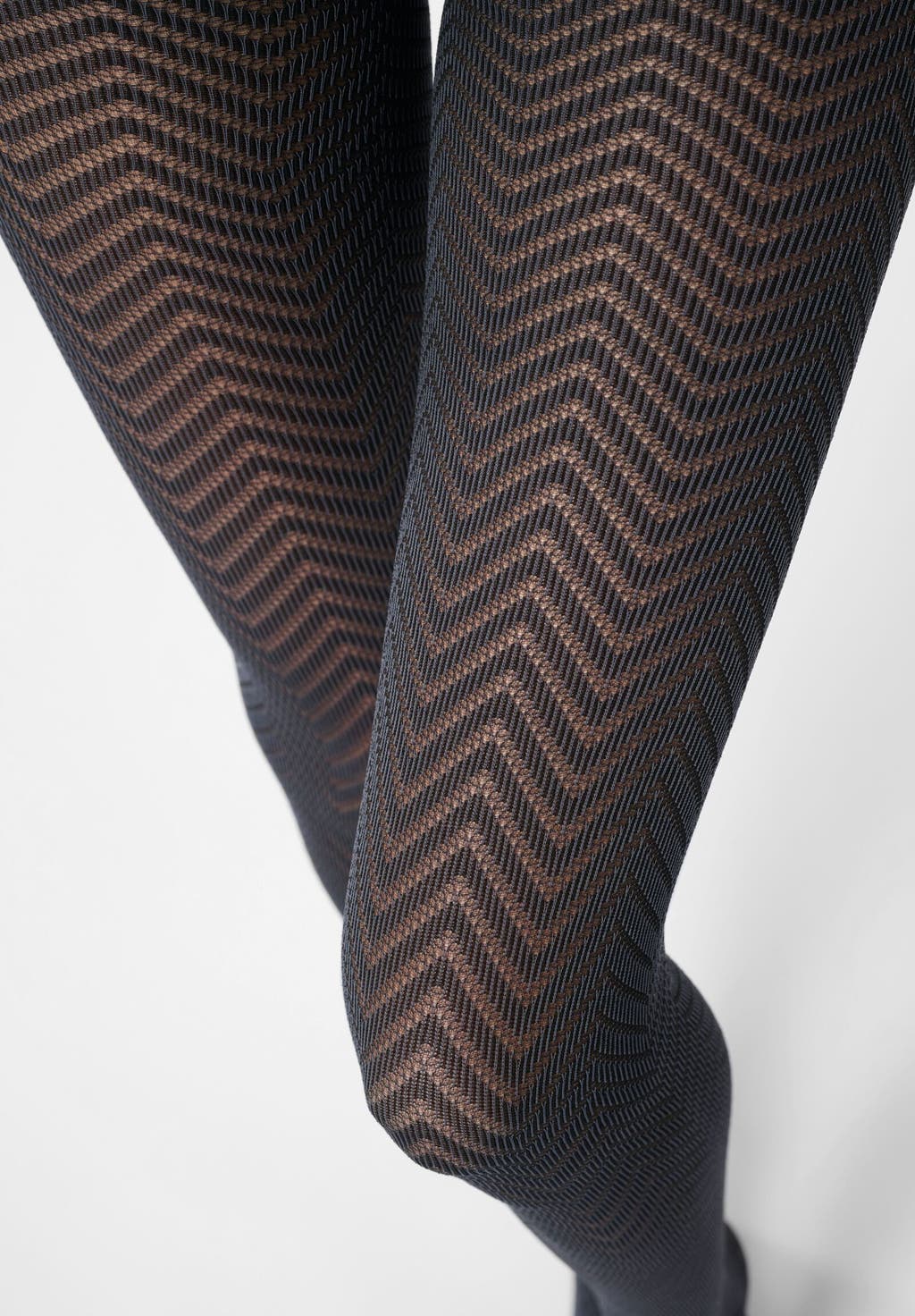 Semi-ogenomskinliga strumpbyxor med tvåfärgat chevron mönster