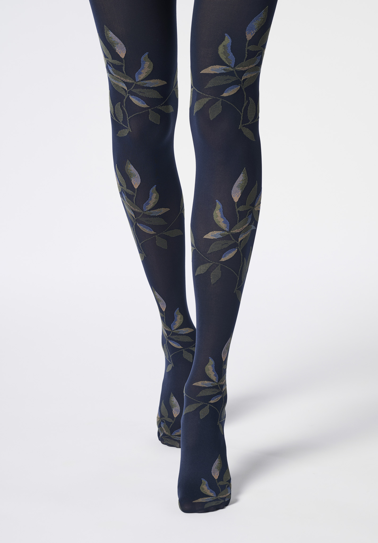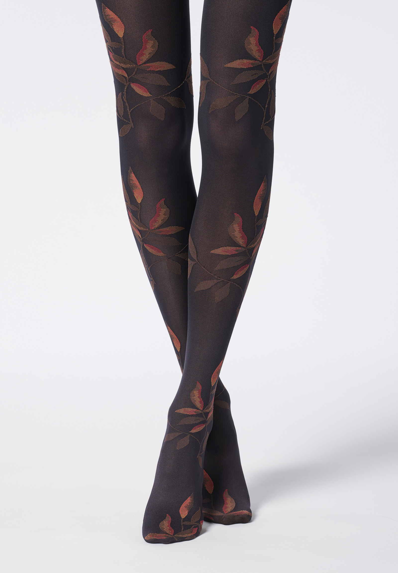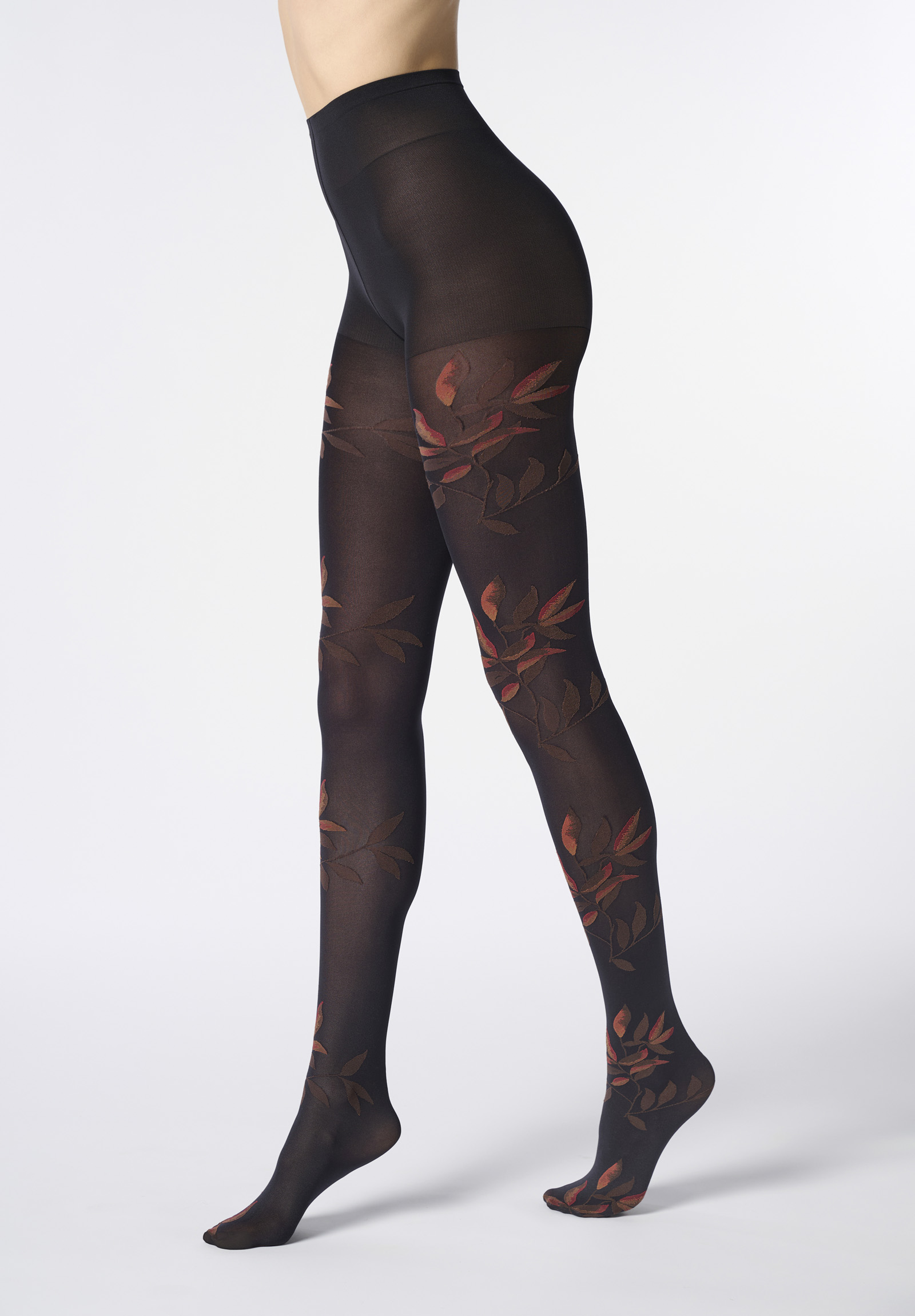 Ogenomskinliga strumpbyxor med tvåfärgat floralt mönster i vackra höstfärger, 50 denier.