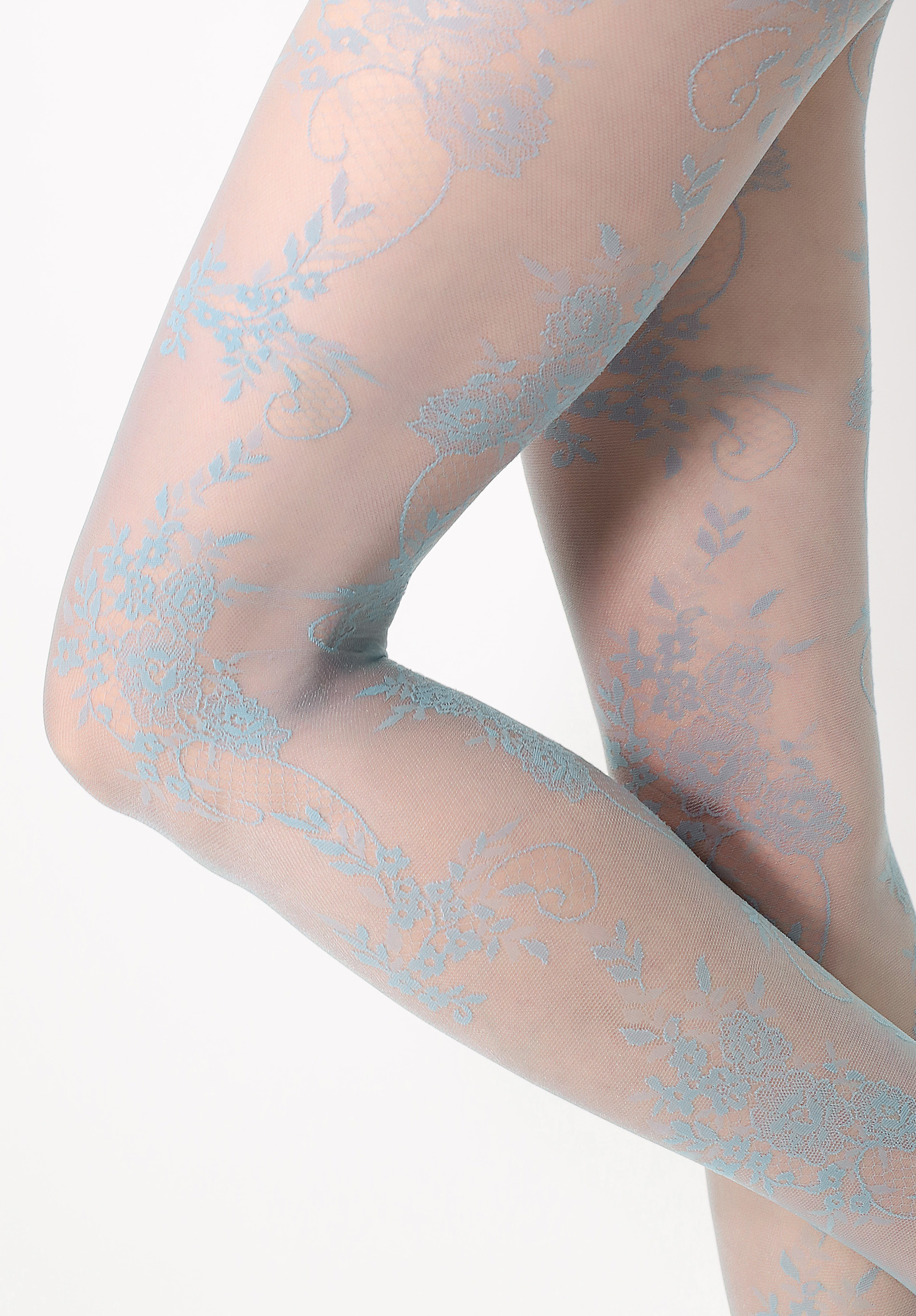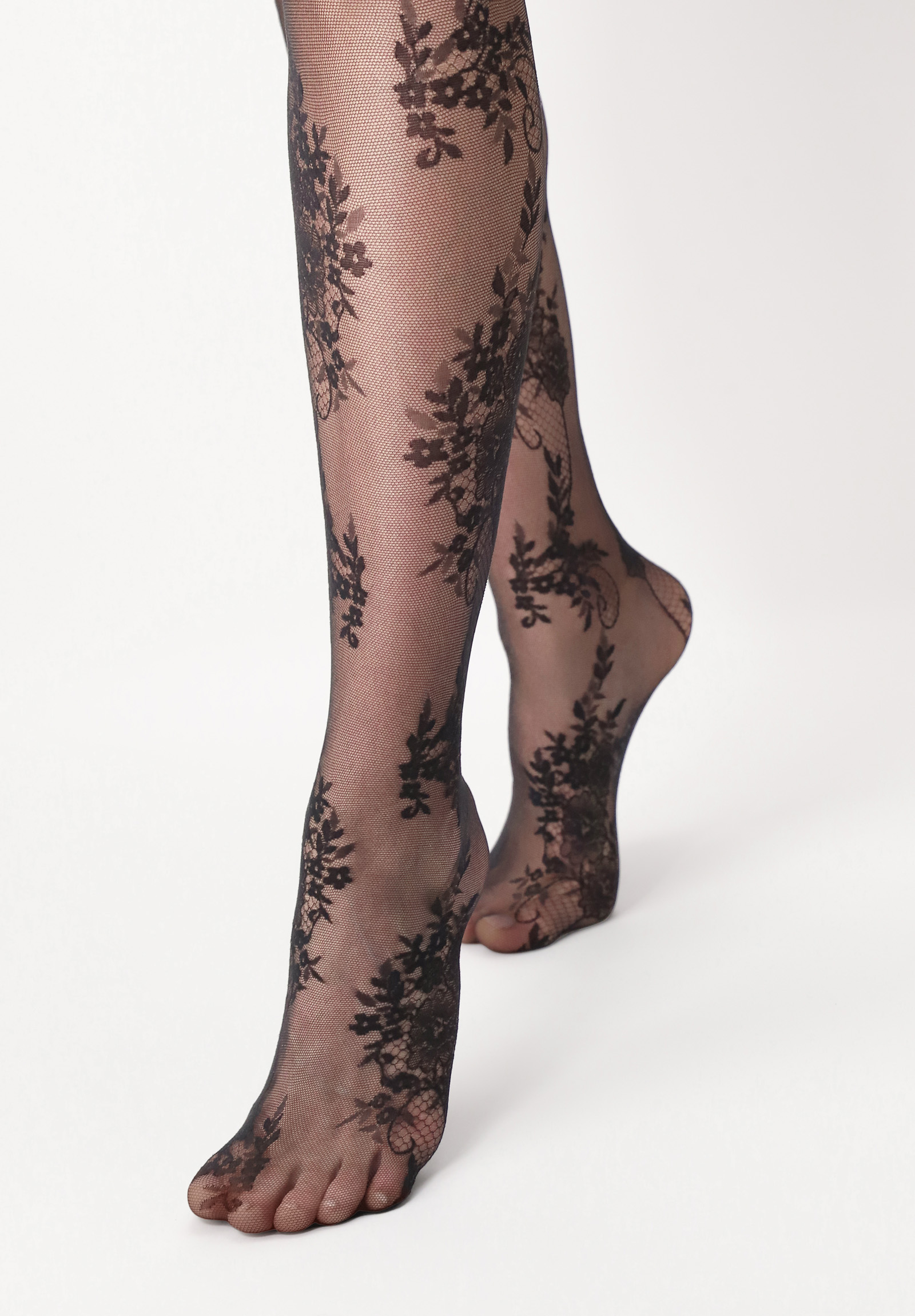 Eleganta tunna strumpbyxor med blommigt mönster i spets-look