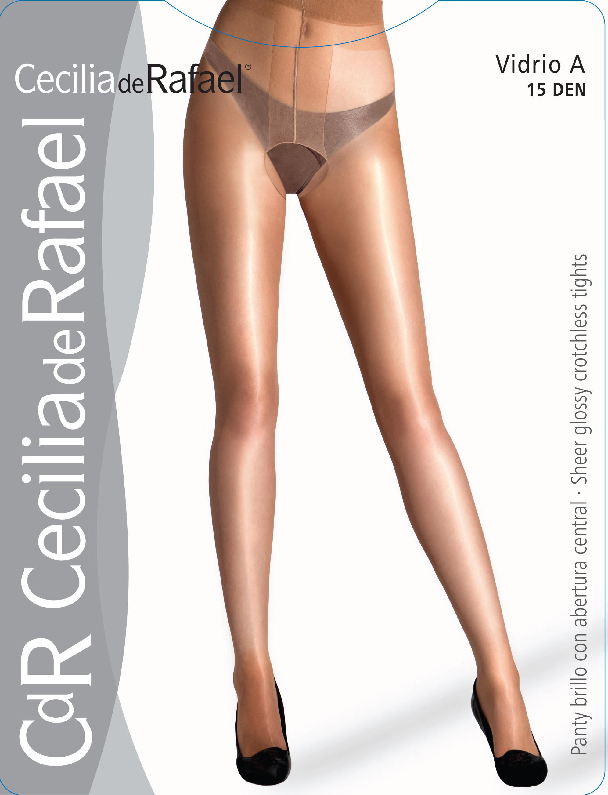 Tunn strumpbyxa med öppen gren, utan mönster, glansig. 15 denier