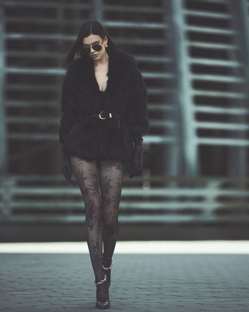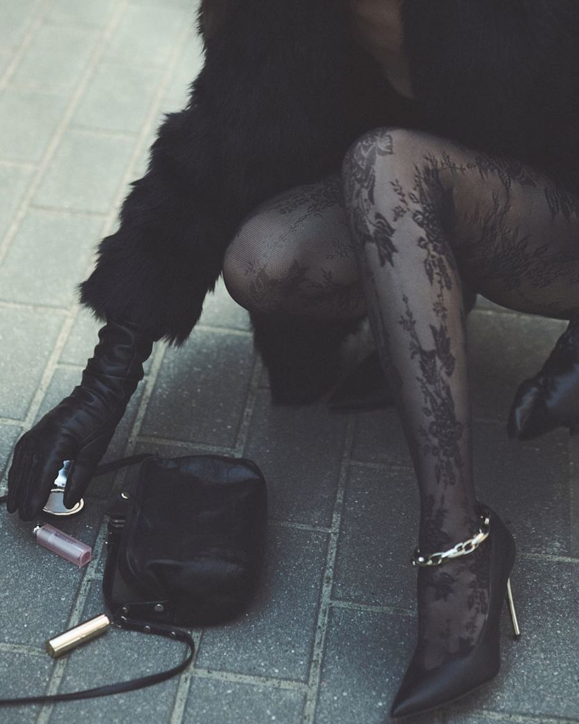 Gabriella - Strumpbyxa med blommönster i spets-look