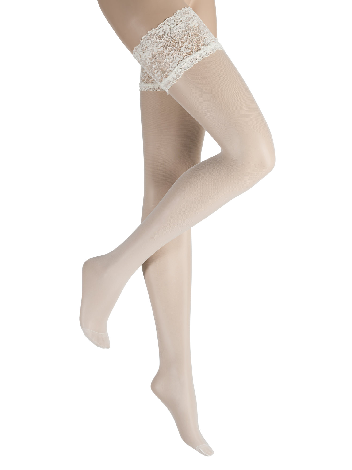 Eleganta, tunna strumpor utan hållare med spetskant, med osynlig förstärkning i tån.