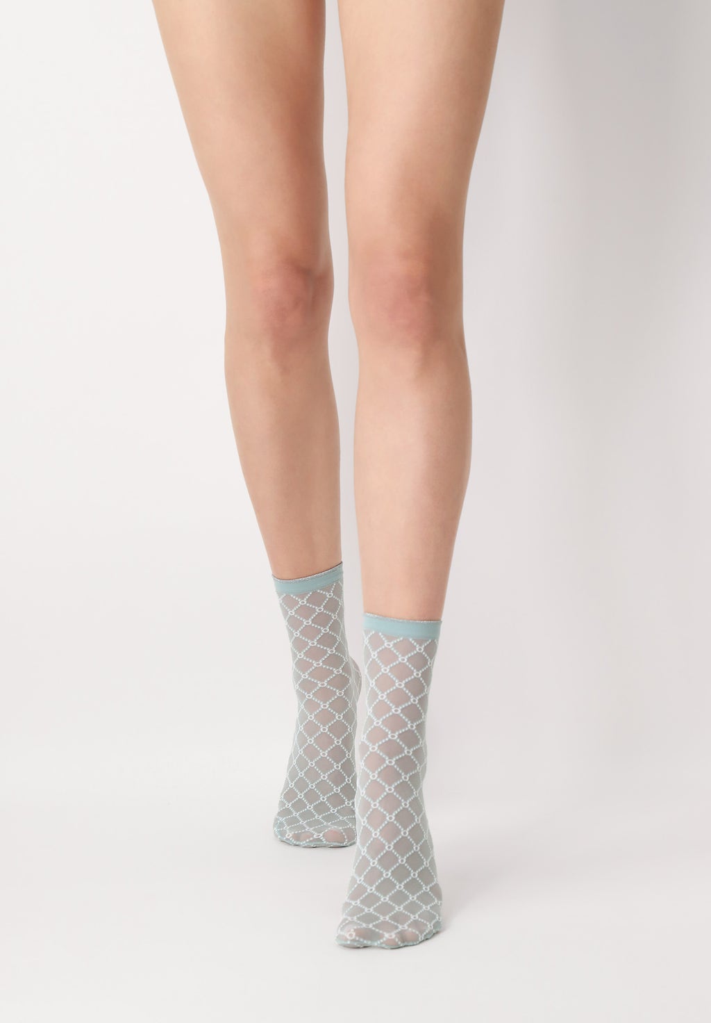 Transparenta, tvåfärgade sockor med geometriskt mönster i nätliknande och tyllliknande effekt, tillgängliga i säsongens trendigaste färger. Med en bekväm, elegant mudd med lurexeffekt och mönstrad tå för optimal komfort, 20 denier.