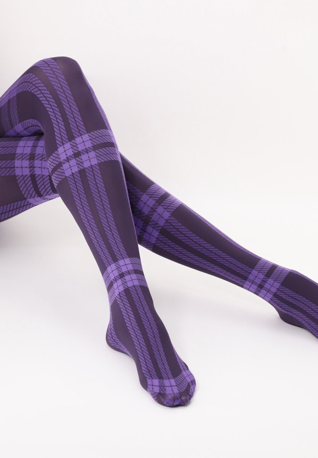 Ogenomskinlig, tvåfärgade strumpbyxa med skotskt rutigt mönster i säsongens hetaste färger, 50 denier.