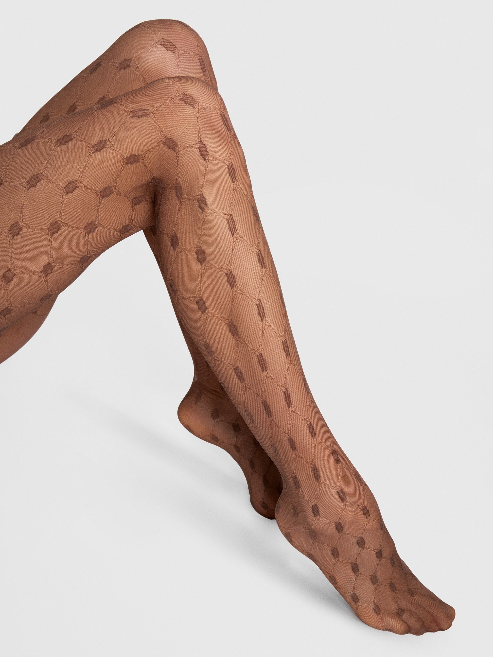Denna modell är en feminin version av nätstrumpbyxor med en spetsinspirerad design. Det slående men eleganta mönstret ger karaktär och sensualitet till vilken outfit som helst. Finns i svart, brunt och ecru, och passar perfekt till både klassiska och trendiga stilar.