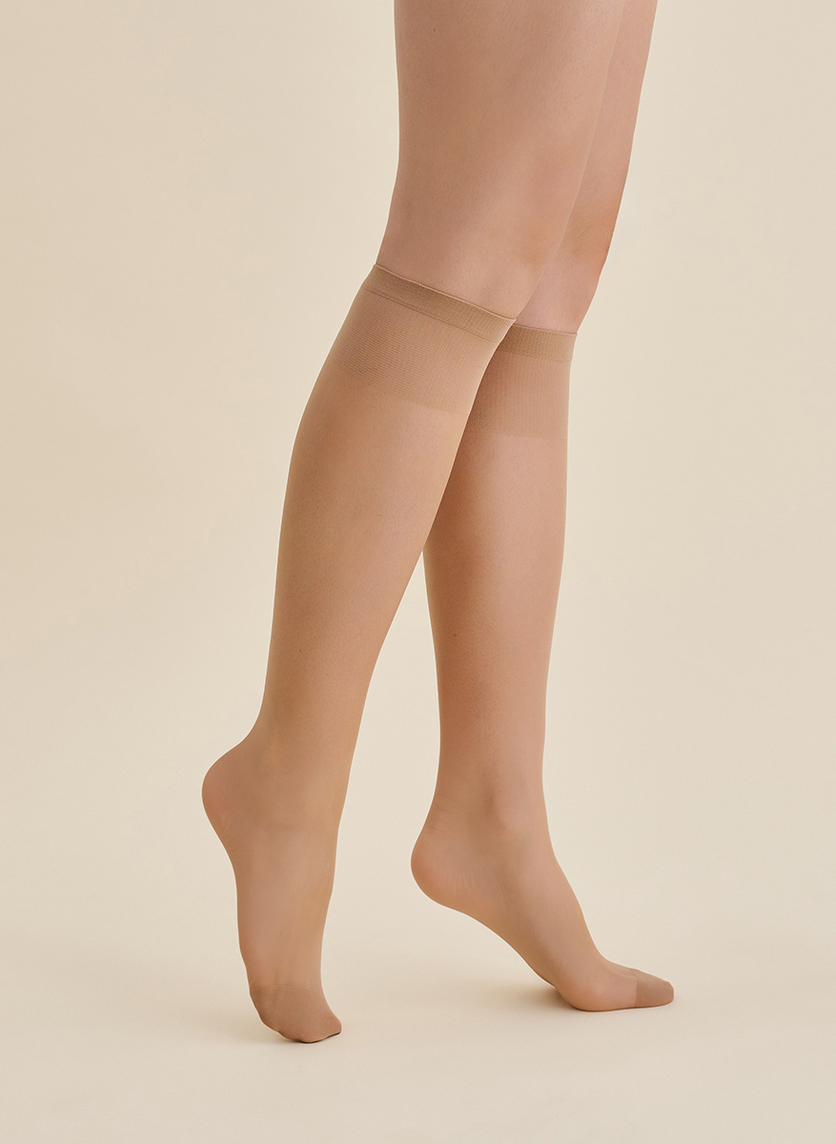 Släta knästrumpo med elastisk resår som inte skär in (2 paar).85% polyamid, 15% elastan