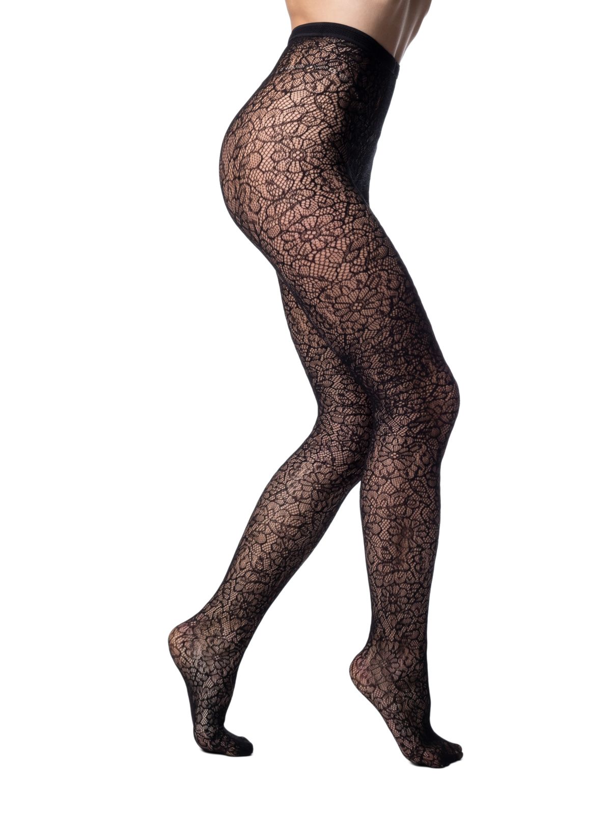 Nätstrumpbyxa med blommigt mönster i spets-look, med förstärkning i tån och sömlös byxdel.