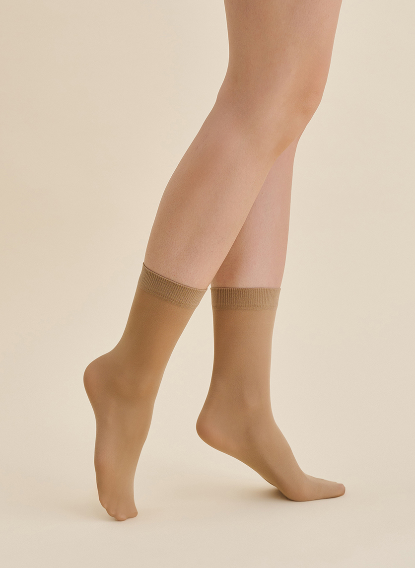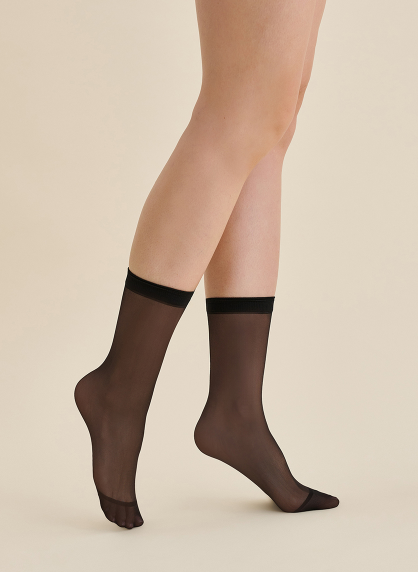 2 par släta sockor utan resår som skär in. 85% polyamid, 15% elastan
